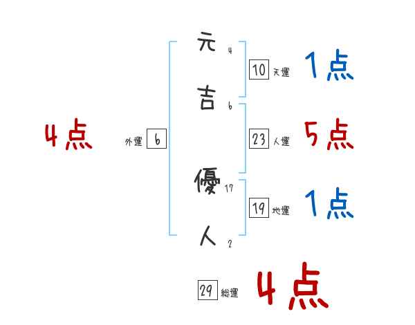元吉優人さんの画数の鑑定結果