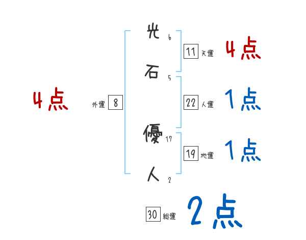 光石優人さんの画数の鑑定結果
