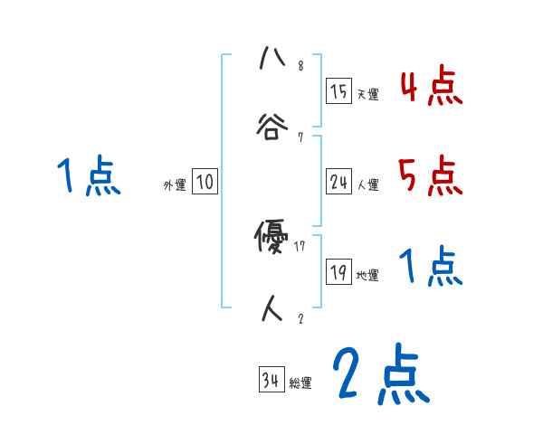 八谷優人さんの画数の鑑定結果