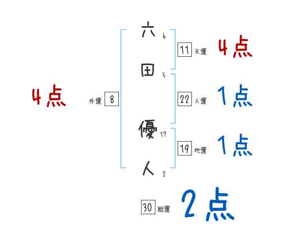 六田優人さんの画数の鑑定結果