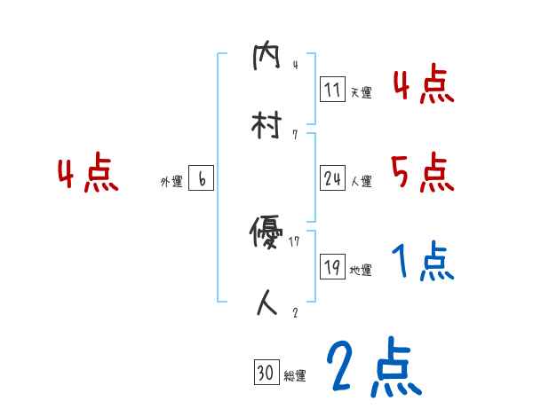 内村優人さんの画数の鑑定結果