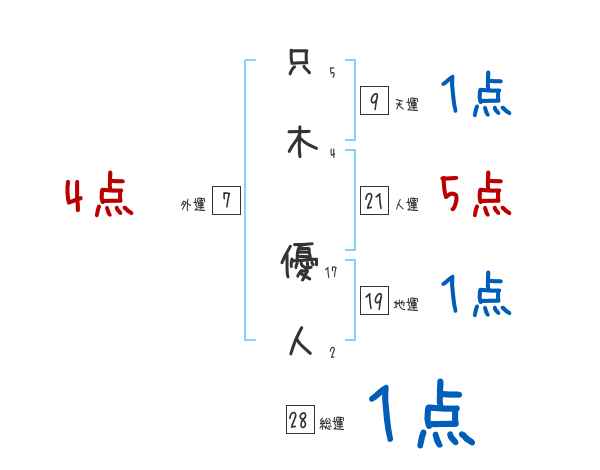 只木優人さんの画数の鑑定結果