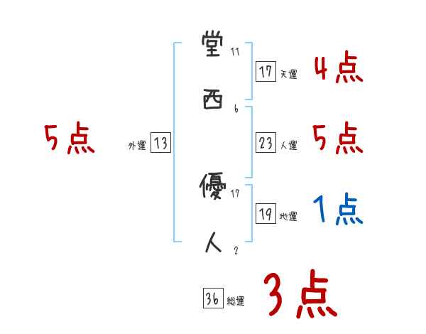 堂西優人さんの画数の鑑定結果