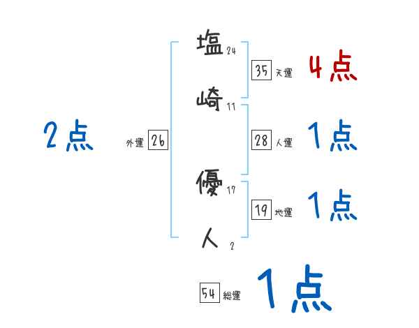 塩崎優人さんの画数の鑑定結果