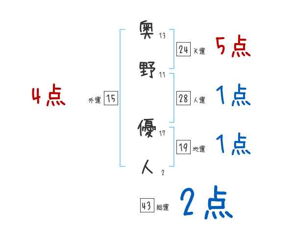 奥野優人さんの画数の鑑定結果