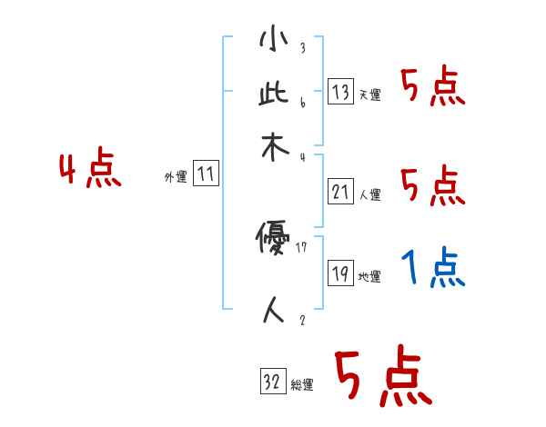 小此木優人さんの画数の鑑定結果