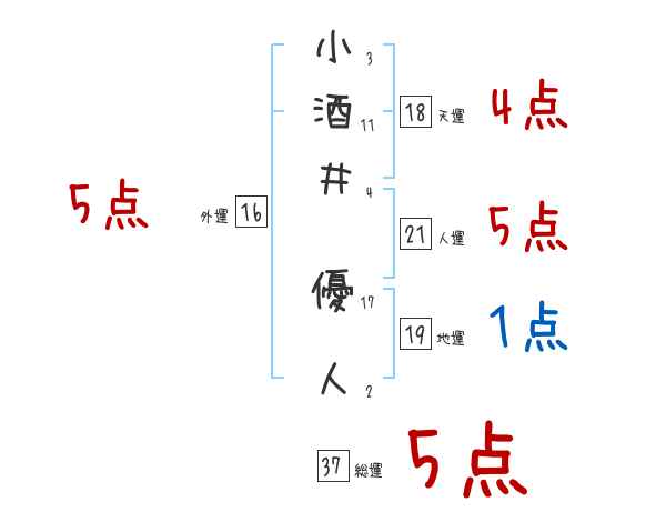 小酒井優人さんの画数の鑑定結果