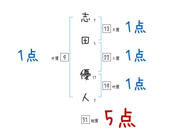 総運![]() | 志田優人さんの総運は31画の5つ星!社交性があり判断力に優れる。順風満帆な人生で円満な生活。 あなたの人生を表す1番重要な運勢です。生涯を通じて影響する総合運となり、主に50歳以降の晩年期に影響を及ぼします。 |
