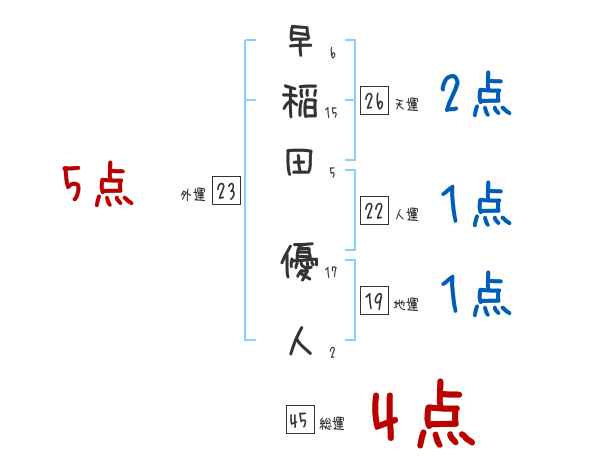 早稲田優人さんの画数の鑑定結果