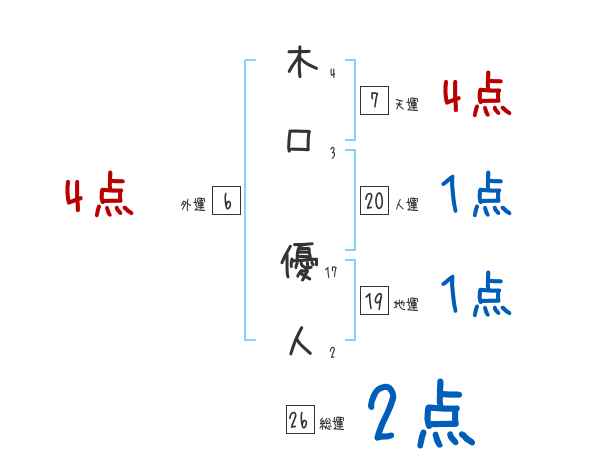 木口優人さんの画数の鑑定結果
