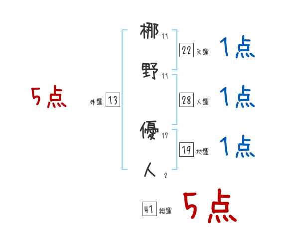 天運![]() | 梛野優人さんの天運は22画の1つ星!努力することが苦手ないっぽう手先が器用。芸術性にも優れる。 家系が持つ宿命的な運勢を表します。祖先から受け継いだ苗字ですので自分の力が及びません。家柄を象徴します。 |