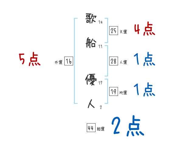 歌船優人さんの画数の鑑定結果