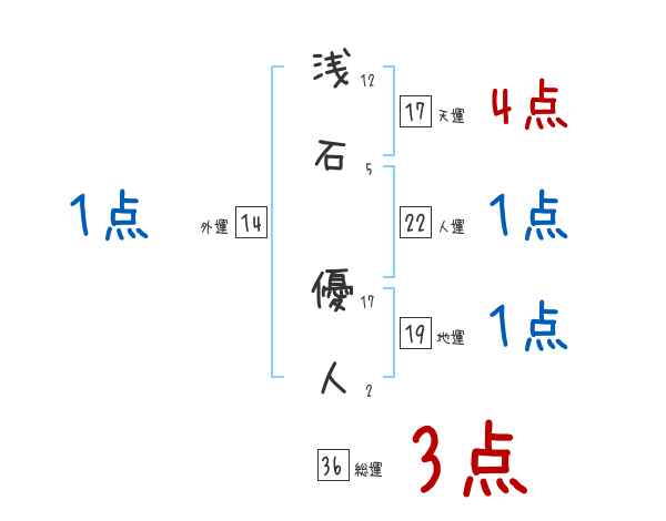 浅石優人さんの画数の鑑定結果