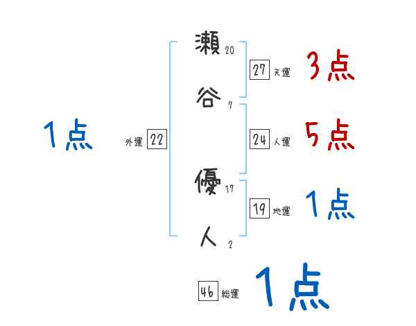 瀬谷優人さんの画数の鑑定結果