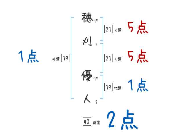 穂刈優人さんの画数の鑑定結果