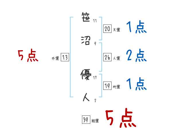 笹沼優人さんの画数の鑑定結果