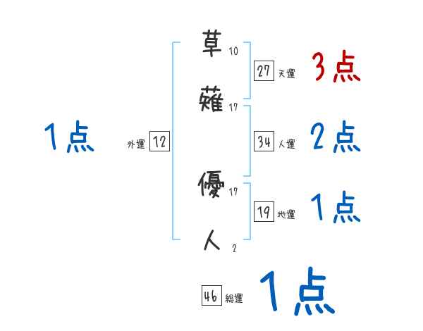 草薙優人さんの画数の鑑定結果