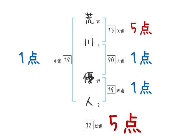 荒川優人さんの画数の鑑定結果