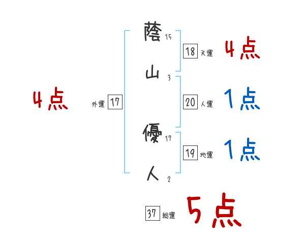 蔭山優人さんの画数の鑑定結果