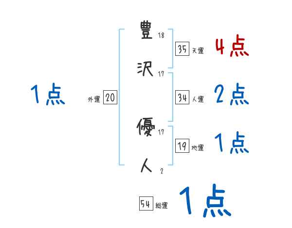豊沢優人さんの画数の鑑定結果
