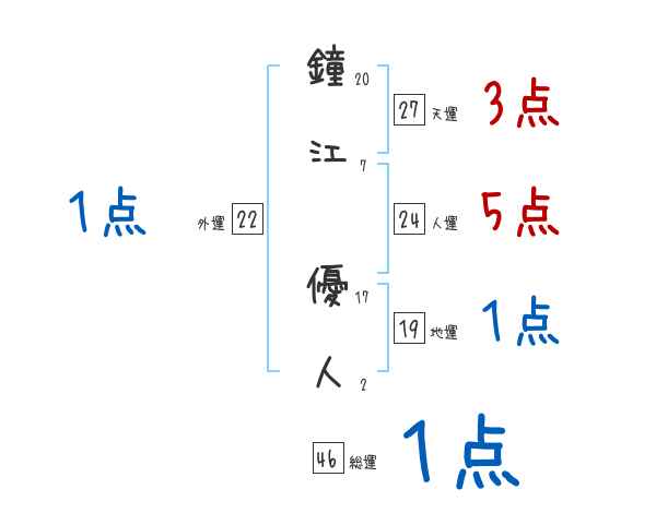鐘江優人さんの画数の鑑定結果
