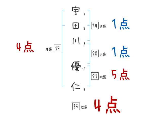 宇田川優仁さんの画数の鑑定結果
