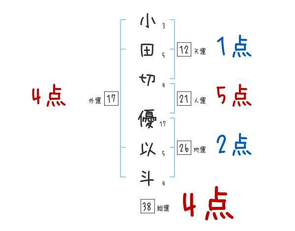 小田切優以斗さんの画数の鑑定結果