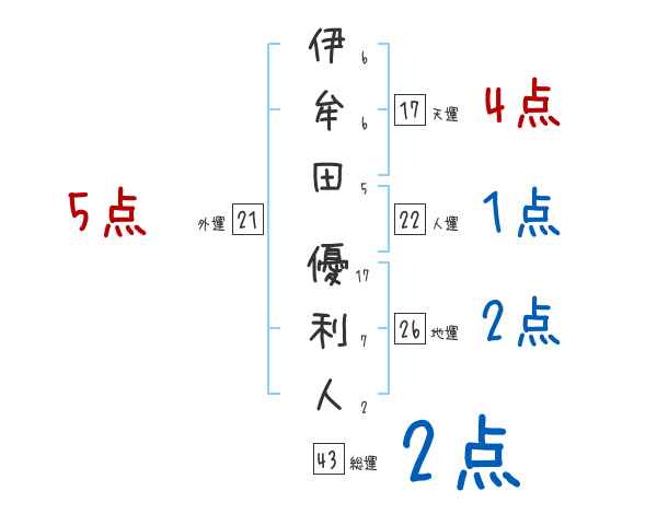 伊牟田優利人さんの画数の鑑定結果