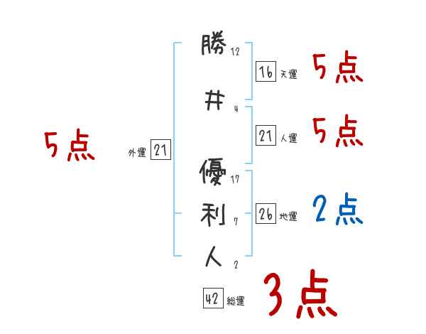勝井優利人さんの画数の鑑定結果