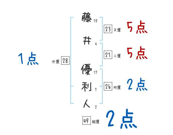 藤井優利人さんの画数の鑑定結果