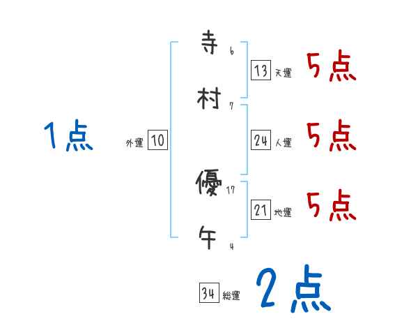 寺村優午さんの画数の鑑定結果