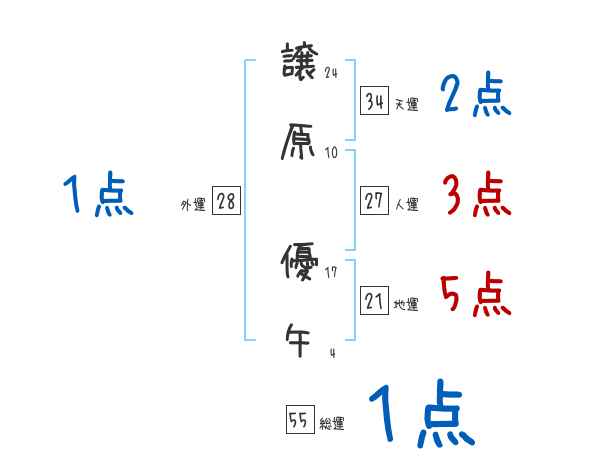 譲原優午さんの画数の鑑定結果