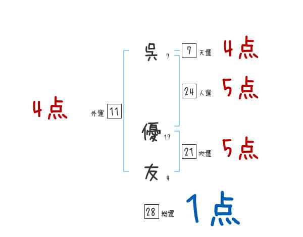 呉優友さんの画数の鑑定結果