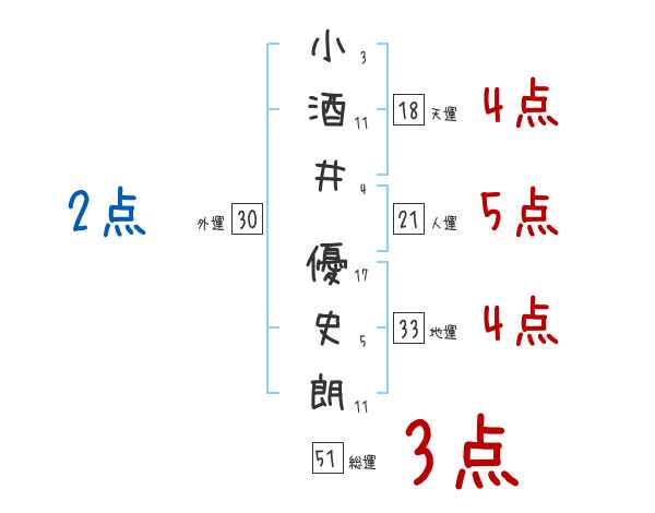 小酒井優史朗さんの画数の鑑定結果
