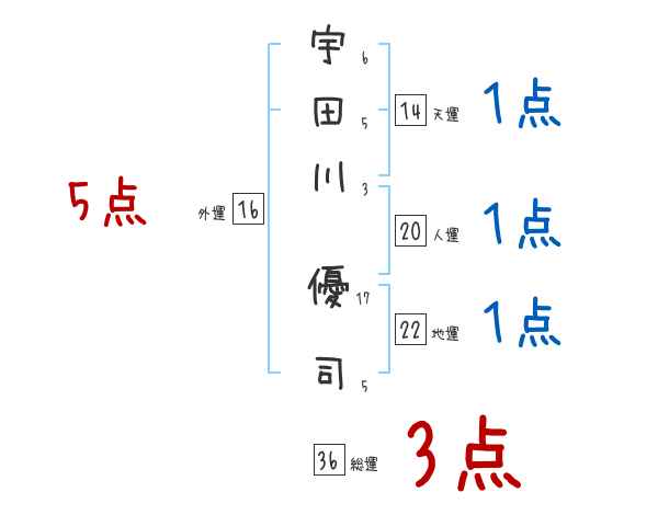 宇田川優司さんの画数の鑑定結果