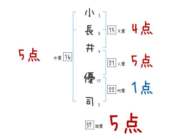 小長井優司さんの画数の鑑定結果