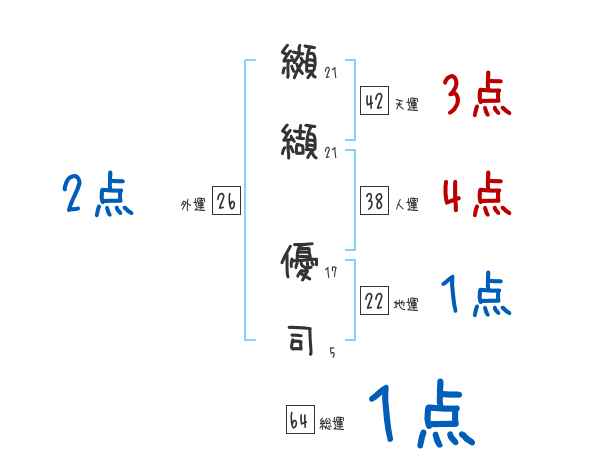 人運![]() | 纐纈優司さんの人運は38画の4つ星!温厚な性格で技術的な才能を発揮する。職人的な仕事に向いている。 性格や才能などを表す2番目に重要な運勢です。人間関係や協調性、社会的な成功に影響します。主に20歳から50歳ぐらいまでの中年期の運勢を表します。 |