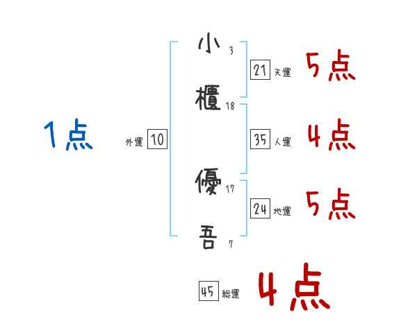 小櫃優吾さんの画数の鑑定結果