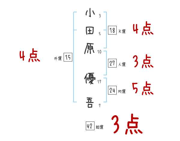 小田原優吾さんの画数の鑑定結果