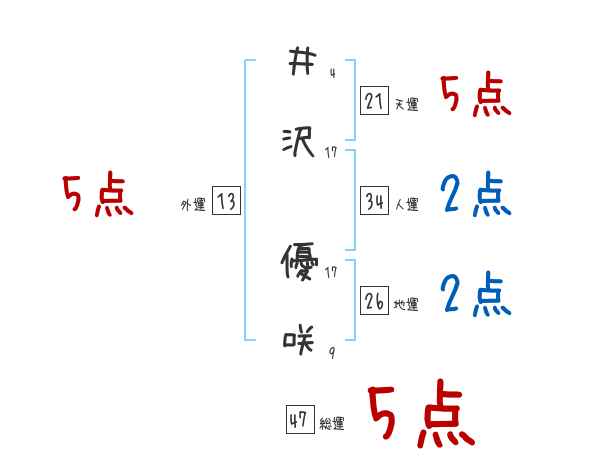 井沢優咲さんの画数の鑑定結果