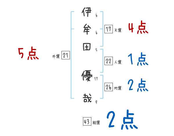 伊牟田優哉さんの画数の鑑定結果
