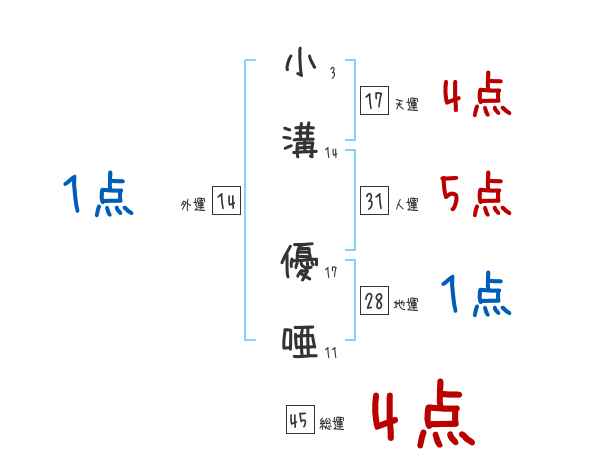 小溝優唖さんの画数の鑑定結果