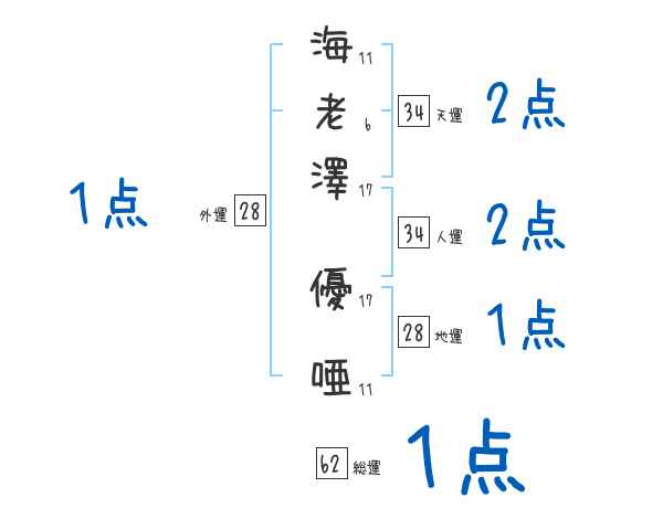 外運![]() | 海老澤優唖さんの外運は28画の1つ星!家庭環境に注意。スポーツで活躍できる能力があるかも。 生活面を象徴する運勢です。外部から受ける影響力を表し、結婚運、家庭運や職場、環境への順応性を表します。 |