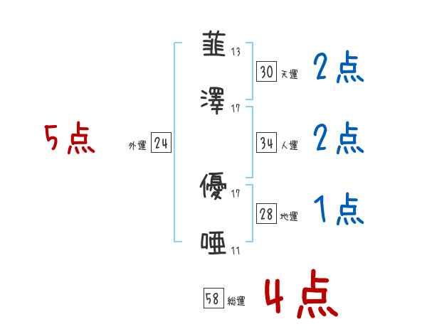 韮澤優唖さんの画数の鑑定結果