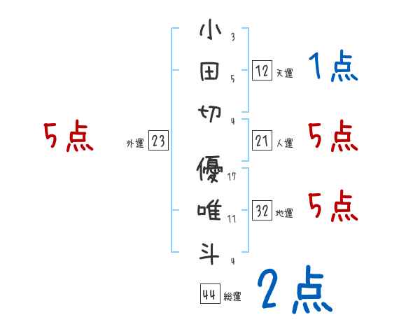 小田切優唯斗さんの画数の鑑定結果