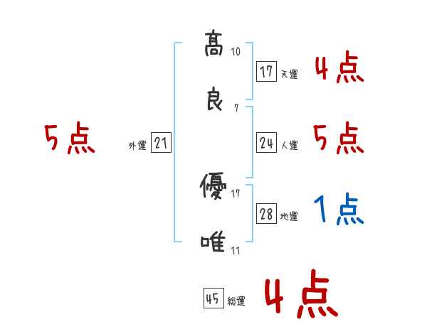 髙良優唯さんの画数の鑑定結果