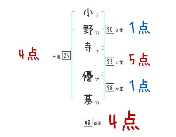 小野寺優基さんの画数の鑑定結果