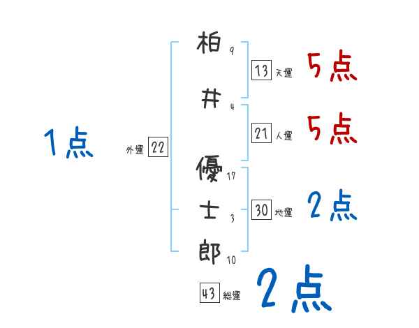 人運![]() | 柏井優士郎さんの人運は21画の5つ星!統率力がある。独立し成功する。名誉を手に入れる。 性格や才能などを表す2番目に重要な運勢です。人間関係や協調性、社会的な成功に影響します。主に20歳から50歳ぐらいまでの中年期の運勢を表します。 |