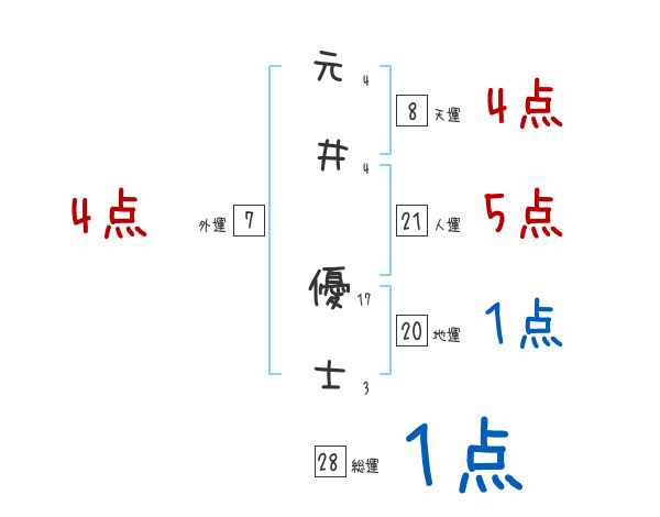 元井優士さんの画数の鑑定結果