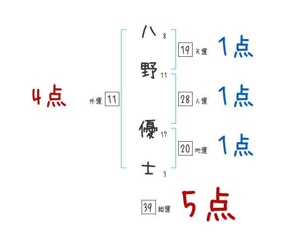 八野優士さんの画数の鑑定結果